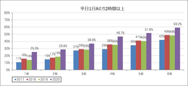 2020年コロナ禍では小学生のICT機器の利用時間が